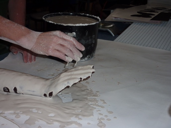 Donare heeft de handen gemaakt en de vlinder en gemonteerd op de plaat voor het monument.